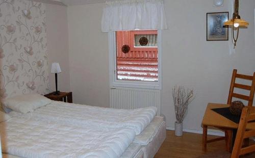 Rummen på Hostel Vånga har trägolv och ljus inredning. Badrummen delas med andra gäster.
