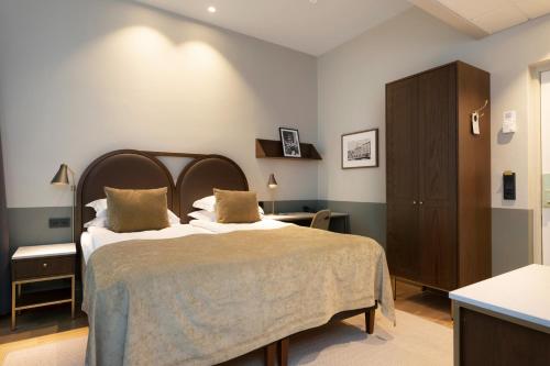 Från rummet har du utsikt över hotellets innergård, Adelgatan eller Norra Vallgatan. Rummet har skrivbord, minibar och platt-tv.