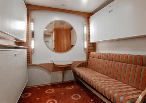 Compact and comfortable cabin without a window for 1–4 people. There is a TV, internal phone, hair dryer, air conditioning, toilet and shower (towels and shower gel/shampoo included).